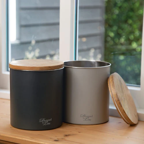 Diese Vorratsdose mit Designed by Lotte hält das Futter Ihres Hundes oder Ihrer Katze länger frisch. Der Deckel aus Mangoholz und der matte, hochwertige Edelstahl verleihen ihm ein robustes und widerstandsfähiges Aussehen, wodurch er sich perfekt in ein industrielles und trendiges Interieur einfügt. Die Vorratsdose ist in zwei Farben erhältlich.