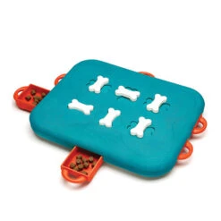 Zeigen Sie Ihrem Haustier erst wie sie die Schubladen dieses Spielzeugs befüllen. Die Knochen müssen sich in der Blockierposition befinden und dann müssen Sie die Schubladen schließen. Dann geben Sie Ihrem Haustier das Zeichen zu beginnen. Um es noch schwieriger zu machen, können Sie die Knochen so drehen, dass sie die Schubladen blockieren. Dann muss Ihr Haustier die Knochen drehen, um an die Snacks zu gelangen. Danach müssen Sie Ihrem Haustier beibringen, dass diese Aktion zum Öffnen der Schublade führt. Versuchen Sie, Ihrem Haustier Anweisungen zu geben und loben Sie jeden Fortschritt im Spiel mit Begeisterung.