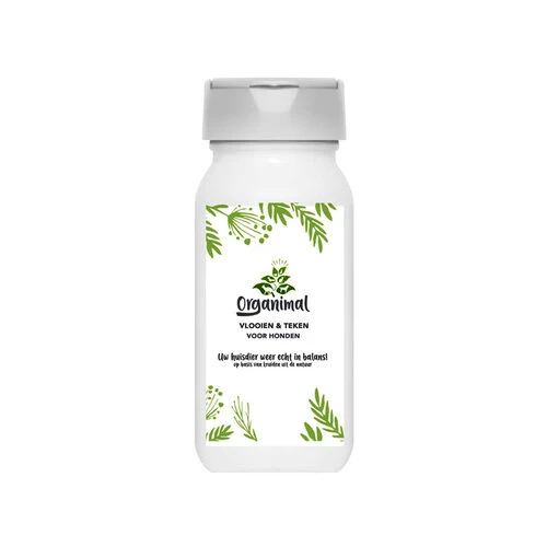 Organimal Flöhe und Zecken ist ein natürliches Produkt, das gegen Flöhe, Zecken und Läuse bei Ihrem Hund eingesetzt werden kann. Es ist 100 % natürlich und enthält eine Mischung aus Kieselgur und Neem.