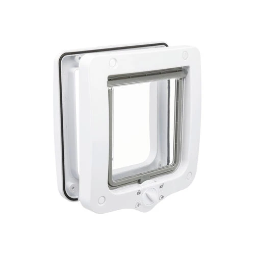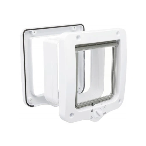 Die Trixie 4-Wege-Katzenklappe mit Tunnel ist eine praktische Katzenklappe, die in Wände und dickere Türen eingesetzt werden kann. Die Katzenklappe mit transparenter Klappe wird mit 1 Tunnelelementen geliefert und hat eine Einbautiefe von mindestens 20 mm. Falls gewünscht, kann die Katzenklappe mit weiteren Tunnelelementen erweitert werden. Die Klappe der Katzenklappe von Trixie ist geräuschlos und hat einen Magnetverschluss. Die Haustierklappe kann leicht in verschiedene Positionen eingestellt werden, z.B. wenn die Katzenklappe geschlossen bleiben muss.