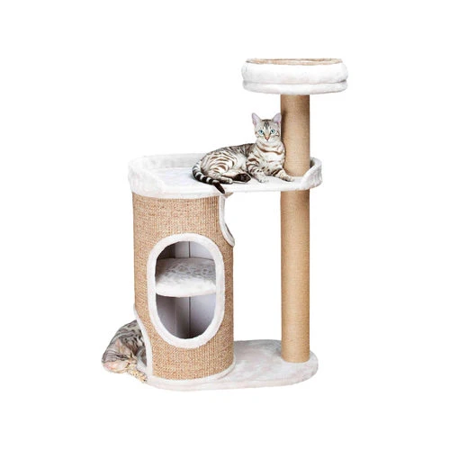Sorgt dafür, dass Ihre Katze überall ein Nickerchen machen kann. Die Hochebenen sind mit Plüsch bedeckt und auf der oberen Hochebene finden Sie einen Plüschkorb. Dieser Korb kann von Hand ausgewaschen werden. Die Stämme sind aus Jute und daher perfekt für Ihre Katze zum Kratzen. Mit dem Kratzbaum von Trixie kann Ihre Katze in jeder Höhe Spaß haben.